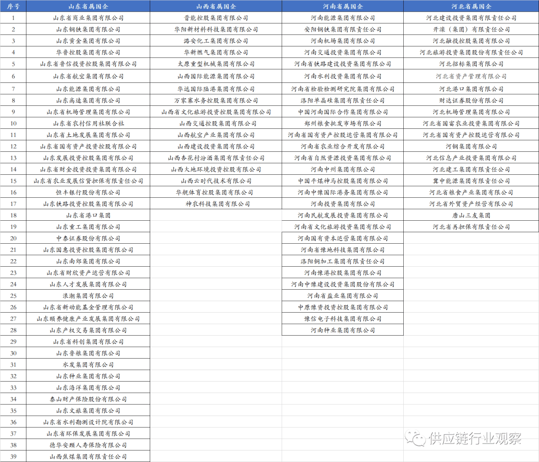 按照各地国资委披露的监管企业名录,江山四省共有省属国企103家,数量上占全国比沉的16%摆布。属国企38家、山西省属国企18家,河南28家,19家。具体名录如下,下表山西焦煤应为山西省属国企。