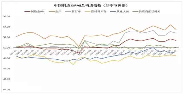 (1)制制业总体走势平稳,大型企业PMI持续两个月回升,申明正在去杠杆取环保束缚下,市场供给布局发生了深刻改变,中小企业削减出产,或被裁减。国企为代表的大型企业顺势去库存,景气宇也随之回升。(2)CPI低于市场预期。去杠杆布景下,虽然CPI连结低位,可是不会改变货泉政策的收紧标的目的。(3)我国对外进出口商业继续快速增加,商业顺差持续扩大,背后底子缘由是,我国做为全球消费产物出产的不成替代性决定的。估计8月,进出口将继续连结不变。(4)美国按照美国《1974年商业法》第301条,正在涉及手艺让渡、学问产权和立异范畴对中国正式启动商业查询拜访。自动权正在中国一边,反制及应对办法,手中可用的牌良多。(5)概念:正在实体经济去杠杆、金融去杠杆、金融监管强化、环保束缚日益加强的大布景下,中国经济系统演变径也十分清晰。我们想用一句话来归纳综合这个过程,中国经济系统正在回归稳态取有序的上,中国社会正正在越来越好。中国制制业采购司理指数(PMI)为51。4%,比上月小幅回落0。3个百分点,取上半年均值根基持平,制制业总体走势平稳。分企业规模看,大型企业PMI为52。9%,比上月上升0。2个百分点,持续两个月回升;中型企业PMI为49。6%,比上月下降0。9个百分点,落至临界点以下;小型企业PMI为48。9%,比上月下降1。2个百分点,低于临界点。