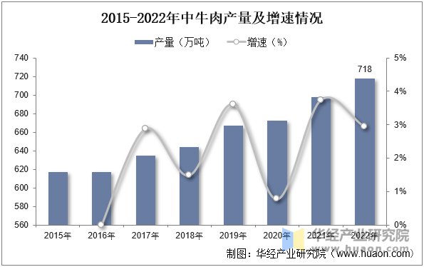 跟着经济的快速增加,居平易近收入程度不竭提高,人们越来越逃求质量高的糊口。而饮食做为糊口中的主要部门,也正在发生着变化。人们起头认识抵家庭饮食健康的环节所正在,仅仅是猪肉产物不再能满脚泛博社会消费者的需要,肉类的选择逐步丰硕多样。此中,牛肉需求的不竭添加鞭策了牛肉行业的敏捷成长。据材料显示,2022年我国牛肉产量为718万吨,同比增加2。9%。